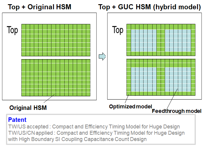 ◦ GUC hybrid model: optimized model + feedthrougth model - Real case example : improve block model reduction rate to over 90% and shorten timing closure TAT to 10~30%