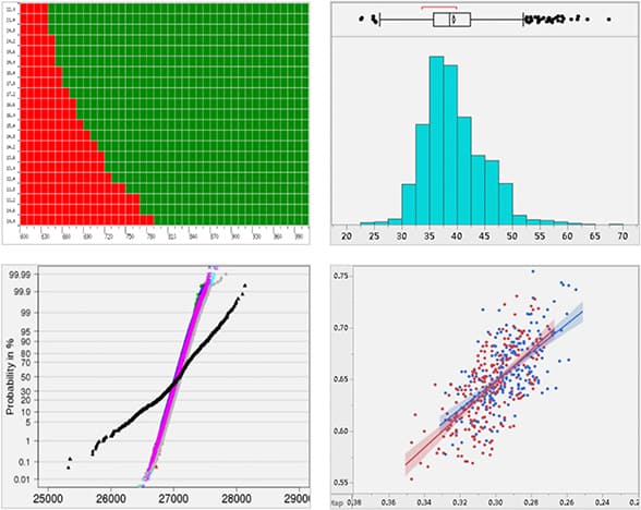 Shmoo plot, Parameters distribution and Process inline or electrical data correlation analysis