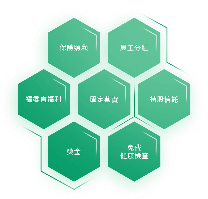 創意電子提供具競爭性的薪酬制度並且秉持利潤共享的理念,以吸引、留任、培育與激勵優秀人才。每位員工的薪酬與獎金,乃依據公司獲利程度、組織目標達成率及員工個人績效決定調薪與獎金金額,GUC 確保每個人的努力與成果有高度正相關。